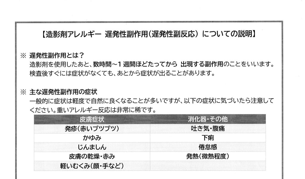 【造影剤アレルギー遅発性副作用についての説明書より】