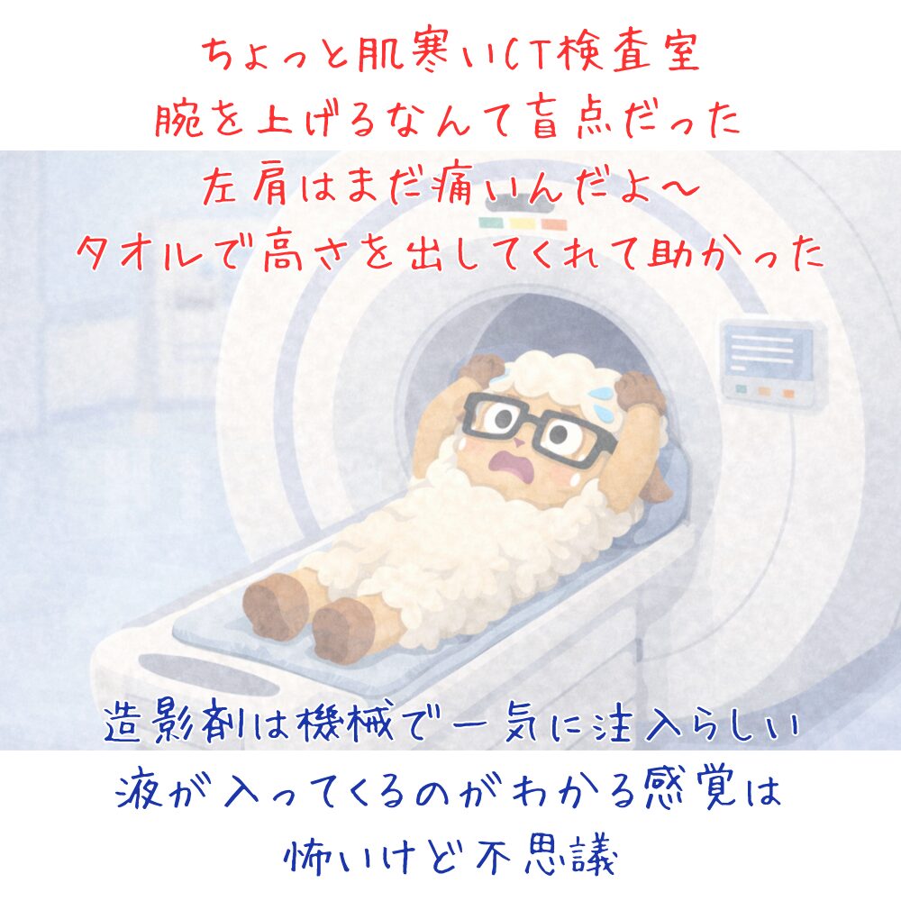 「造影剤入れていきますね~」って言われ、緊張でドキドキしつつ